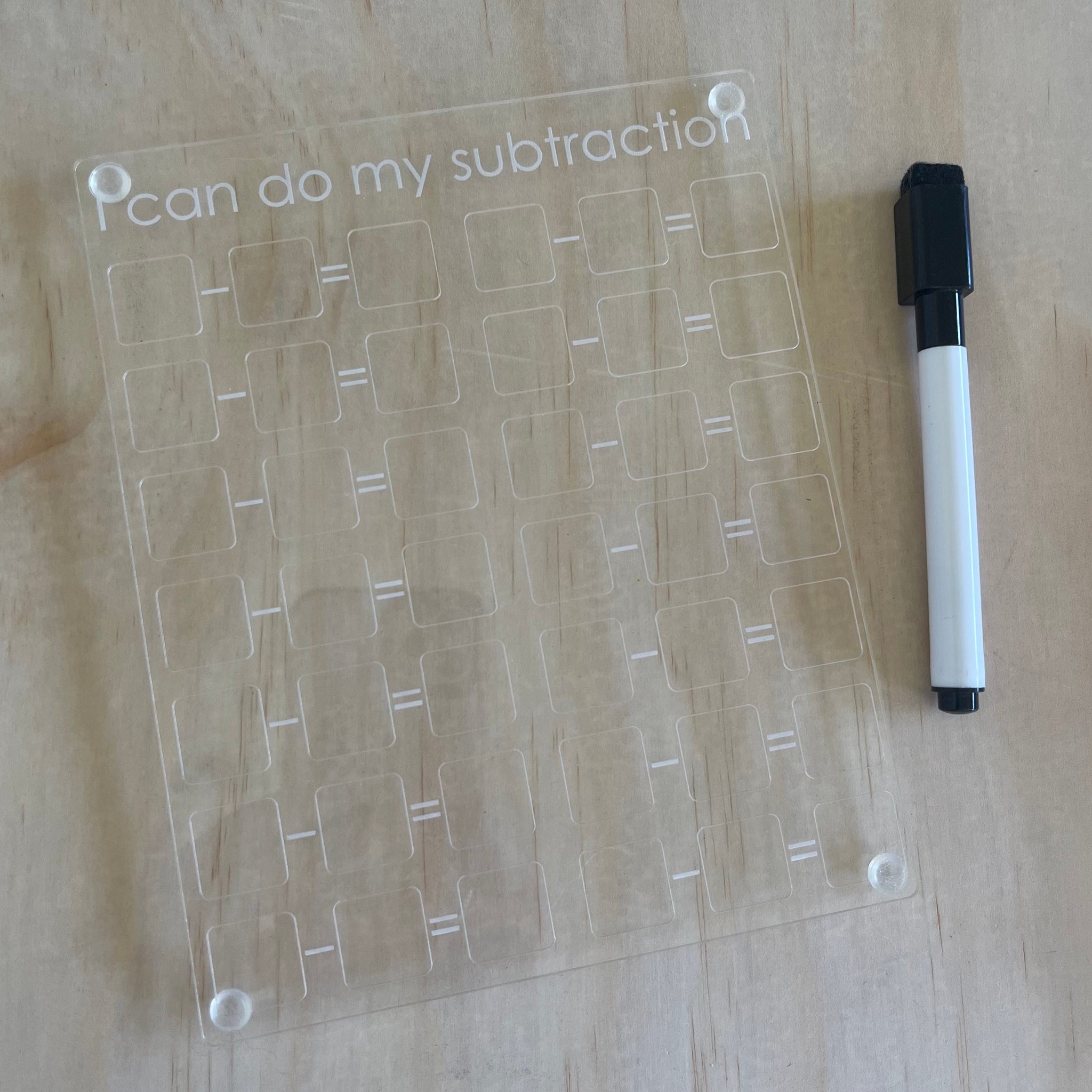 Use this super handy acrylic board to help your children learn and improve on their subtraction and writing skills.