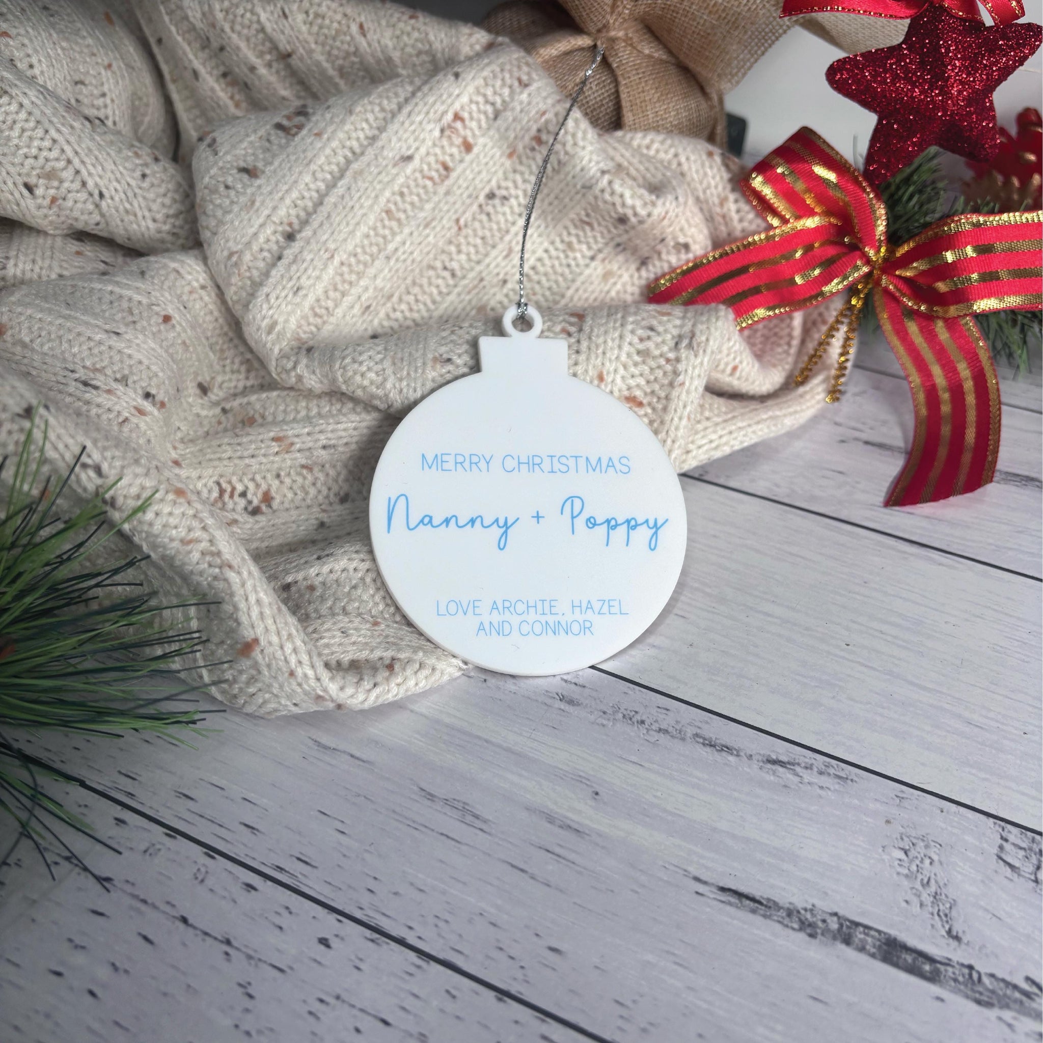 Celebrate the special people in your life with a custom printed or engraved Christmas ornament. This thoughtful and personal keepsake is the perfect way to show your love and appreciation this holiday season.