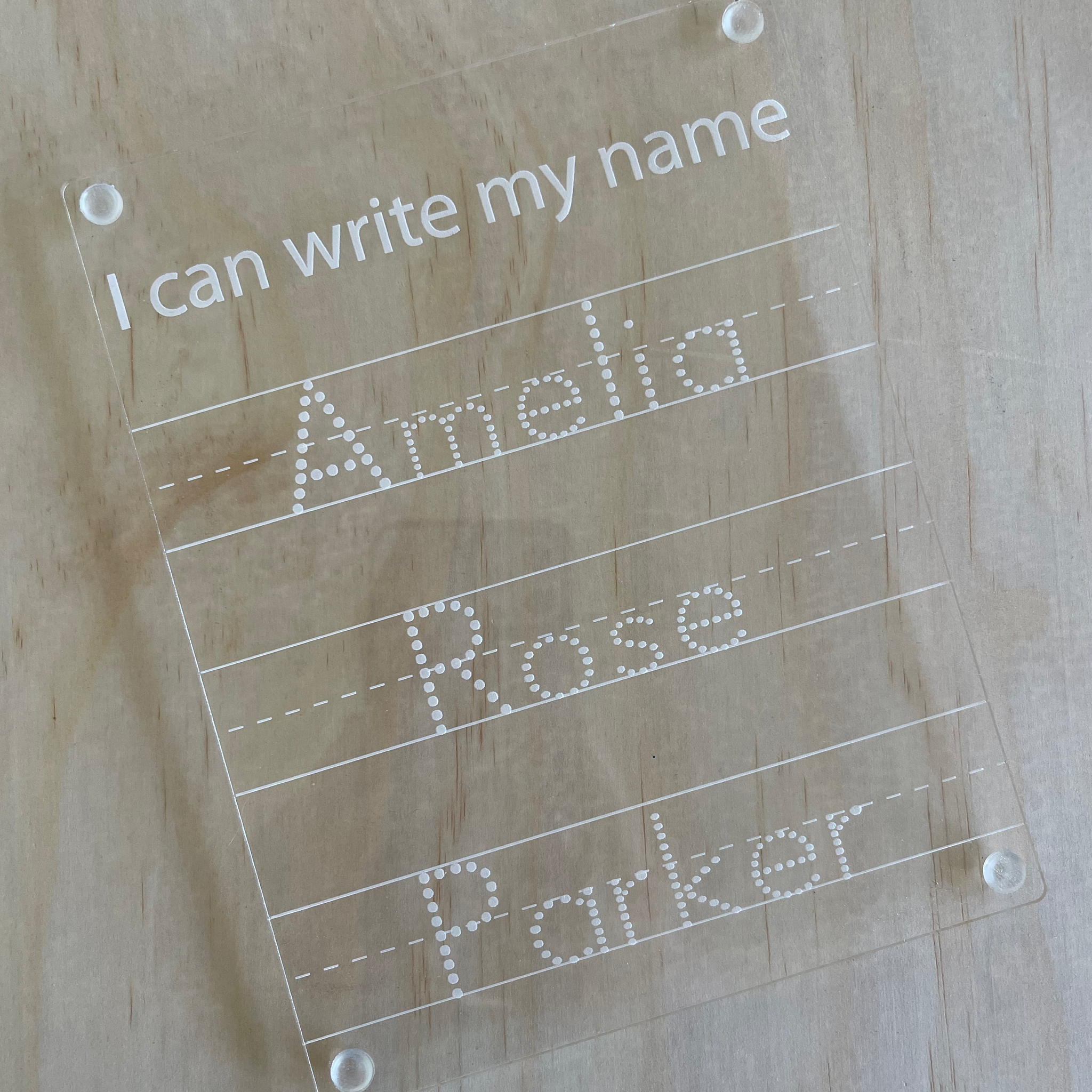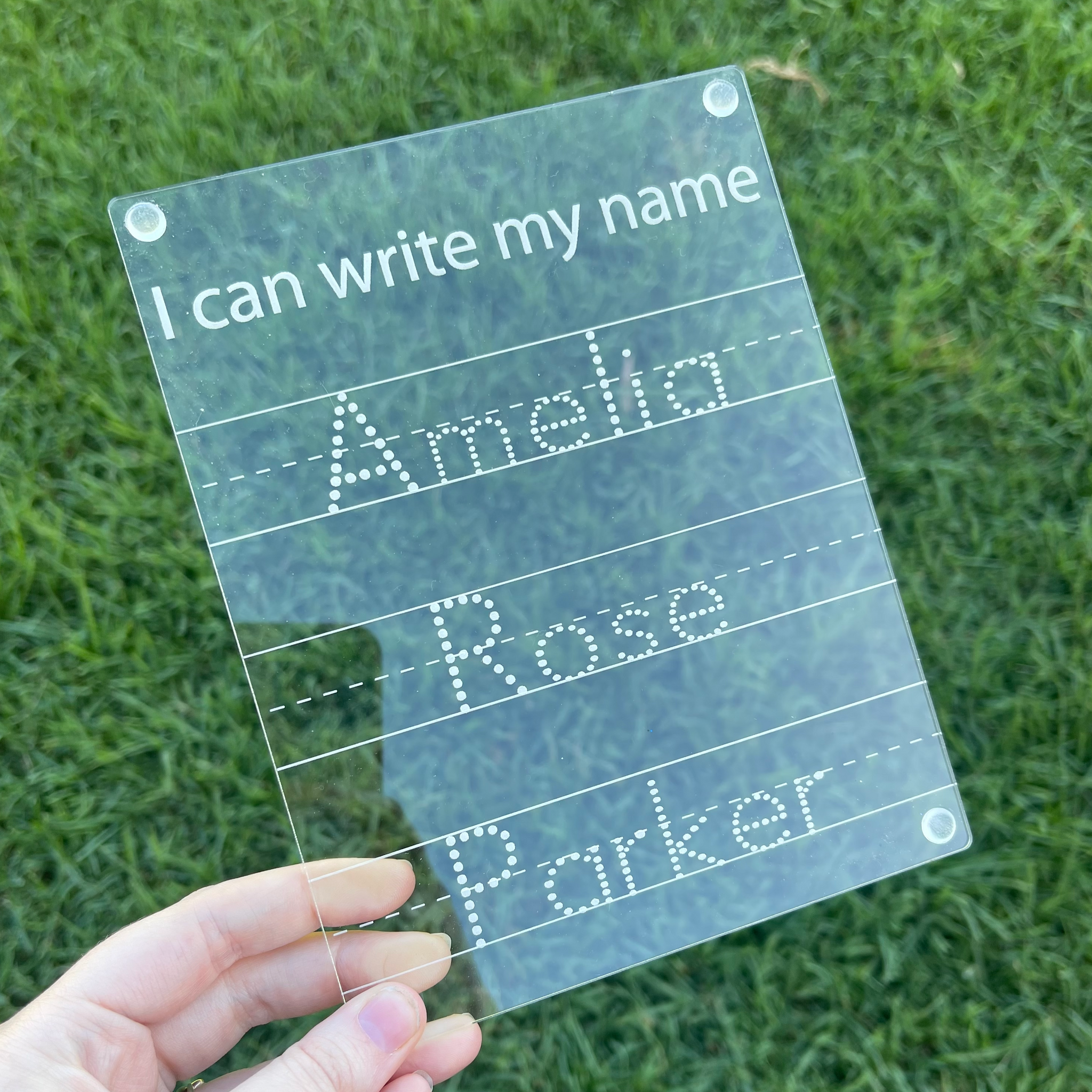 Use this super handy acrylic board to help your children learn and improve on writing their own name.