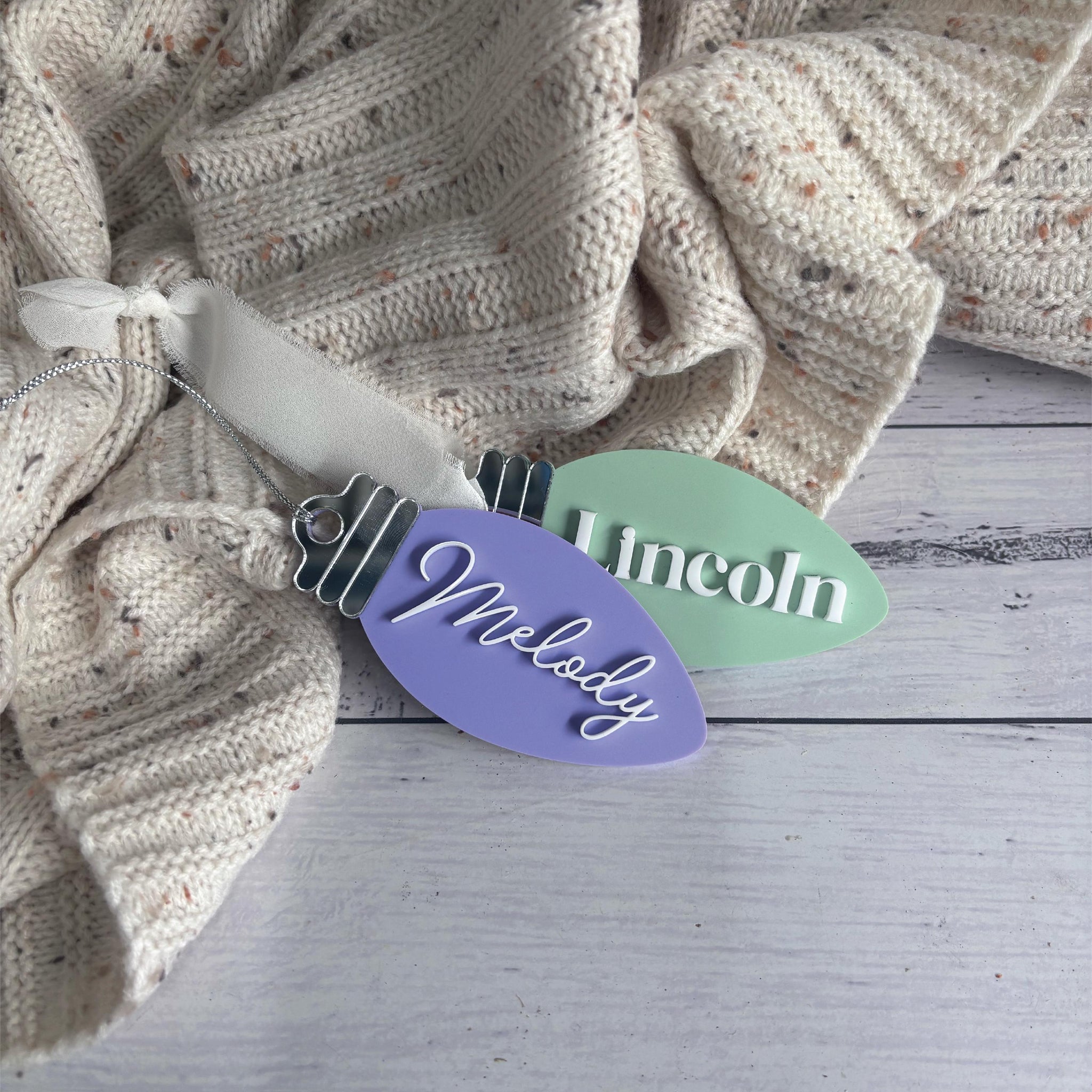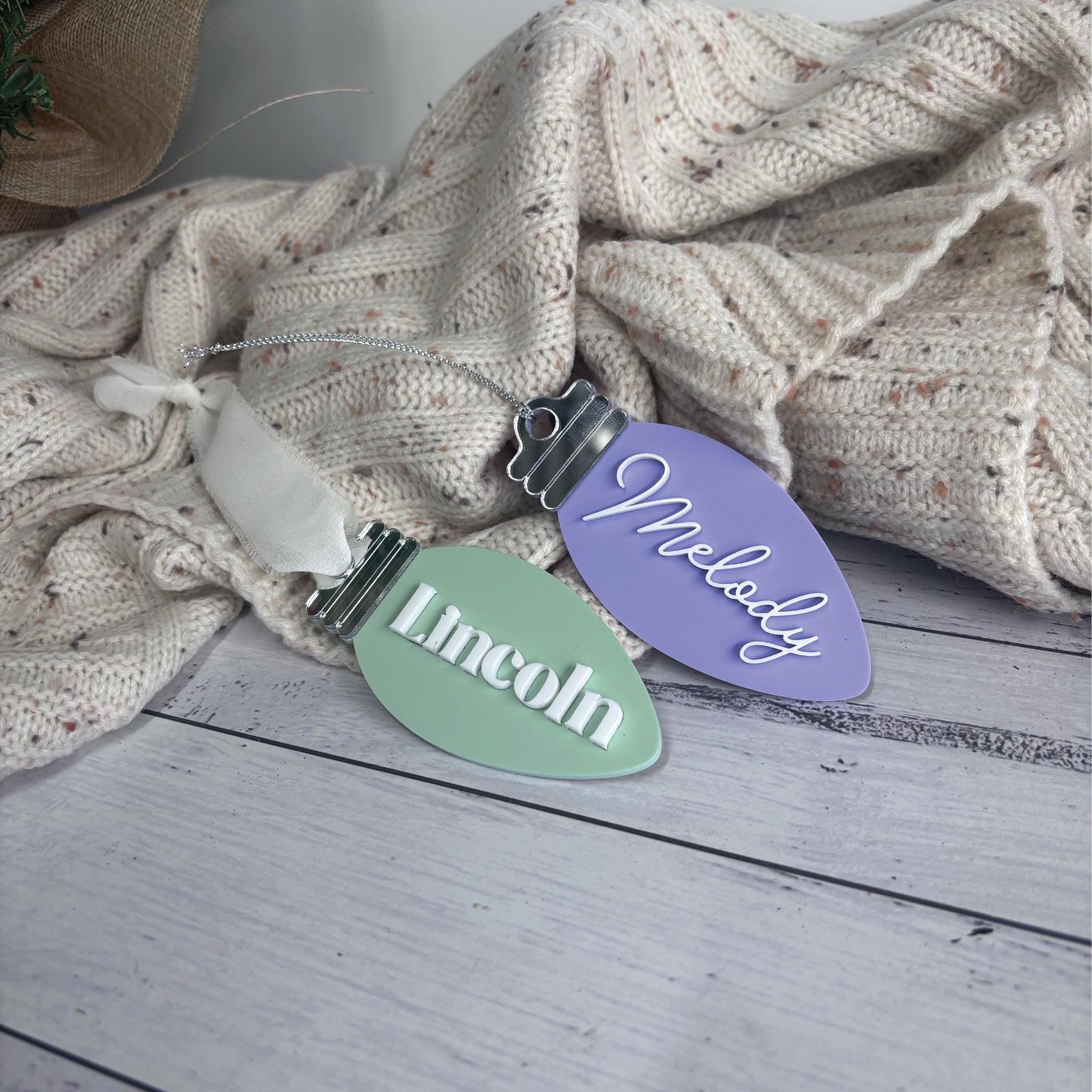 Give your Christmas tree a personalised and festive glow with these adorable lightbulb-shaped ornaments! Each one is custom-made with a loved one's name, making them a perfect addition to your holiday decor or a thoughtful, unique gift.